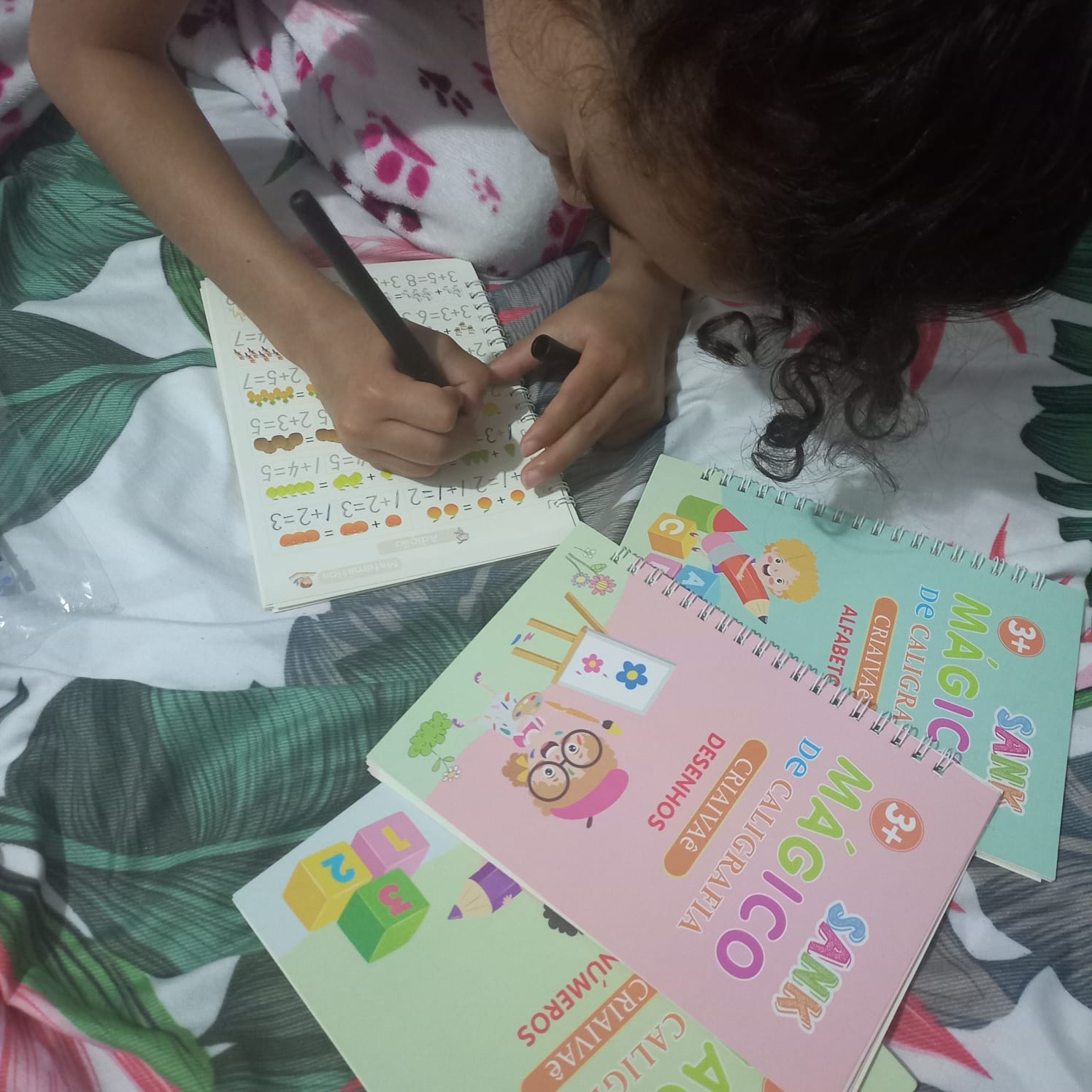 Mi hija feliz usando el set de caligrafía, la verdad que muy bonito.